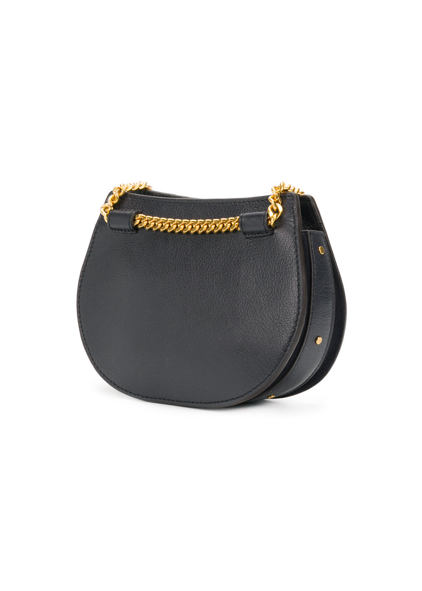 One of the most timeless and chic handbags you could invest in right now, this Nile bracelet bag from Chloé is defined by its signature half-moon shape, jewellery-inspired top handles and a dainty chain strap. Manufactured in Spain from a luxurious mix of goatskin and calf suede in a must-have black hue, the covetable design is punctuated with subtle gold-tone studs incorporating the signature edge while maintaining a sense of lightness we've come to expect from the label. The top zip fastening opens to a fully lined interior with a logo-stamped internal slip pocket for your cards and keys. Complete with a discreet front embossed logo, it's a truly fabulous treat no Chloé girl can be without.